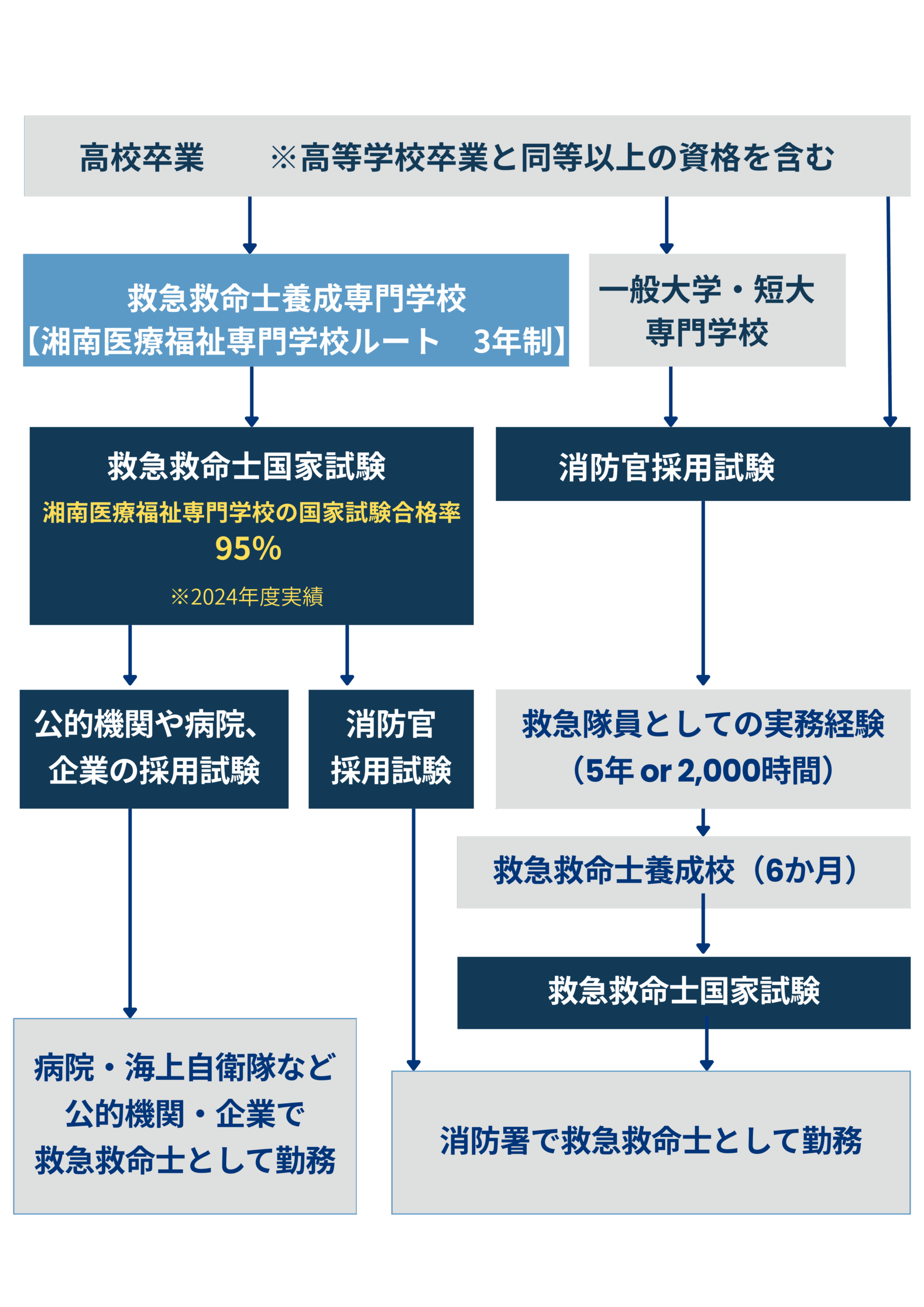 専門学校で学び救急救命士国家資格と消防官採用試験を受け合格する事が消防署で活躍する救急救命士の最短ルートです。